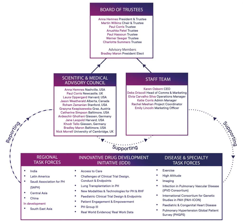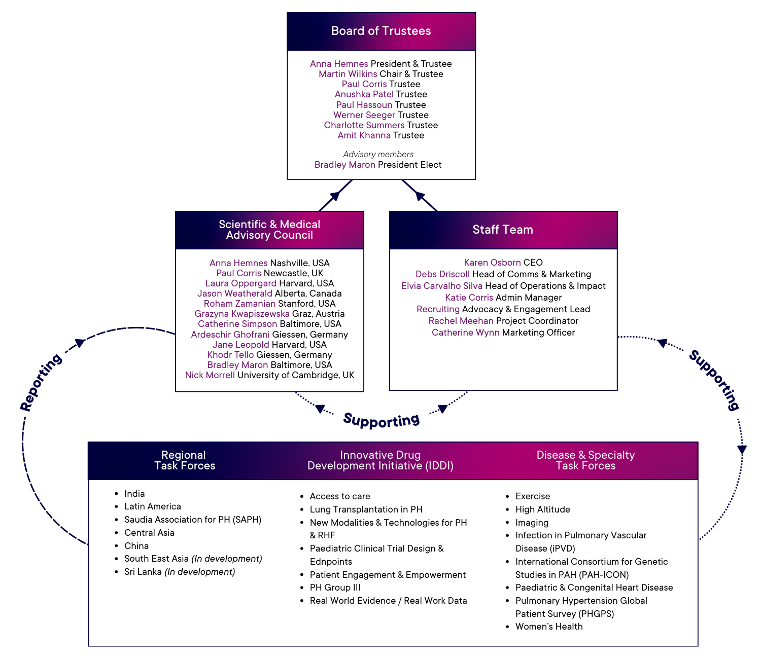We are governed by a Board of Trustees that includes world leaders in the field of pulmonary vascular disease (PVD) and people with exceptional business and finance skills. The Board is responsible for the charity's strategy, direction, and activities. The role of Trustee is unpaid — all our Trustees give their time and expertise freely, and we are truly grateful to them all.